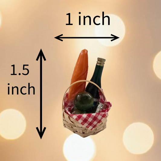 Dollhouse Miniature Baskets with Wine and Baguette - Set of 6 – 1:12 Scale Kitchen Accessories – Handmade Food Props for Doll House Dining Room Decor
