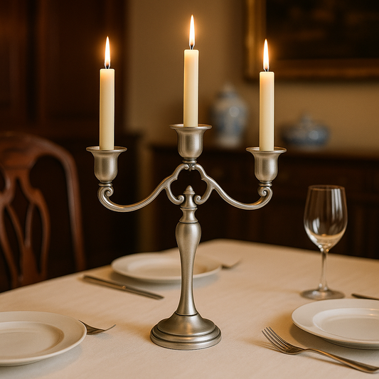 Pewter 11" H Candelabra, Candlestick Holder for Wedding, Church, Taper Candle Holder Stand Centerpiece Elegant Decoration Piece for Table