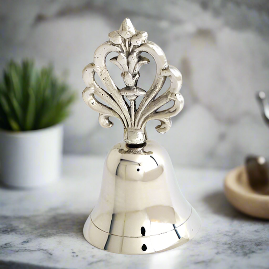 Nickel 4 1/2" Guardian Angel Bell. - Set of 3 - Wedding Favor. Kissing Bells.