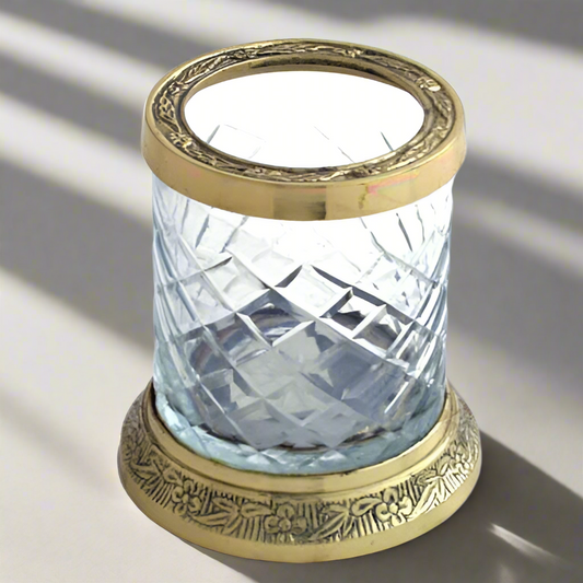 Brass and Glass Jar with Lid 6"H. Qtip Holder Dispenser for Cotton Swabs, Balls, Pads, Floss Picks