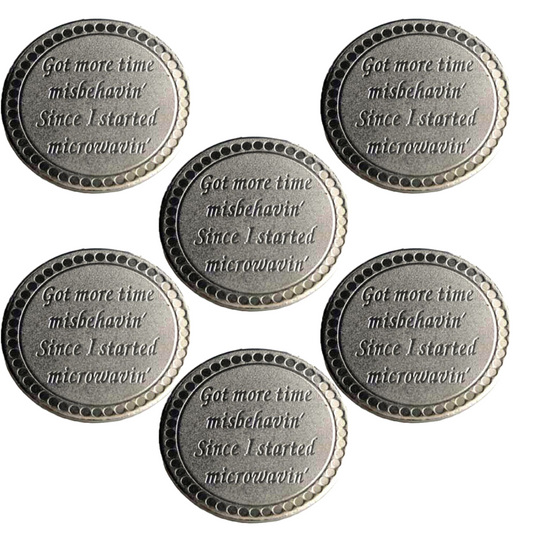 Silver 2.5" Diameter Refridgerator Magnet - Set of 6. Got more time misbehavin' Since I started microwavin