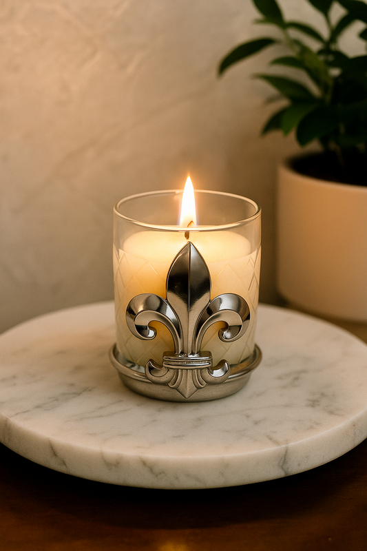 Silver Fleur de Lis Base & Glass Votive Cup, - Set of 3