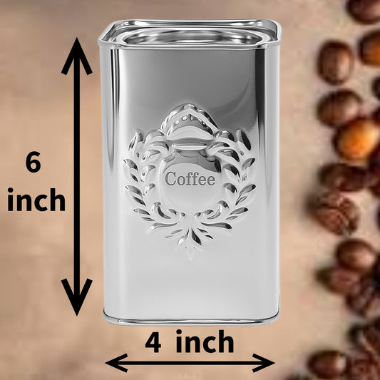 Silver Coffee Canister 6" x 4" Silver Storage Container with Lid, Decorative Embossed Coffee Design. Kitchen Accessory.