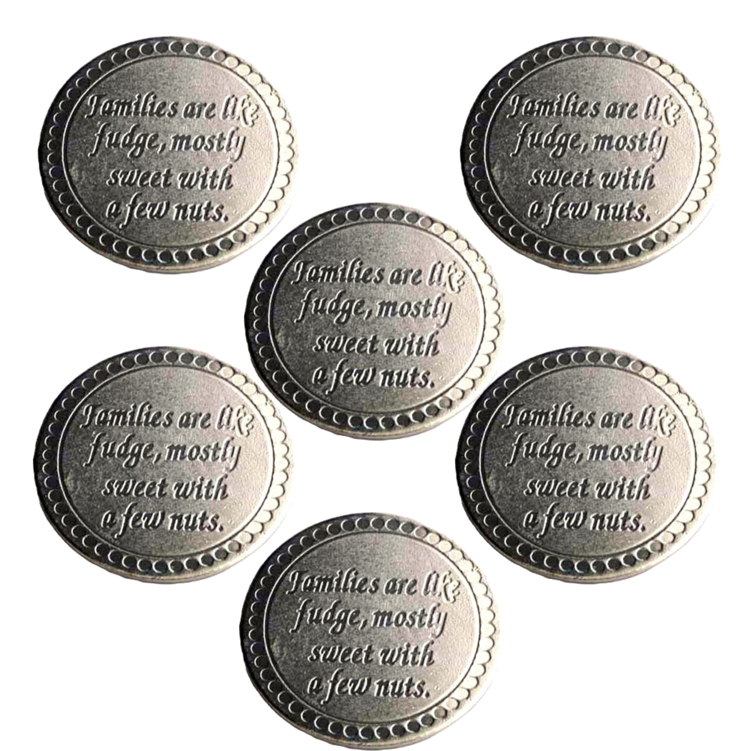 Nickel magnet. "Families are like fudge, mostly sweet with a few nuts." The price is for six of the same saying.