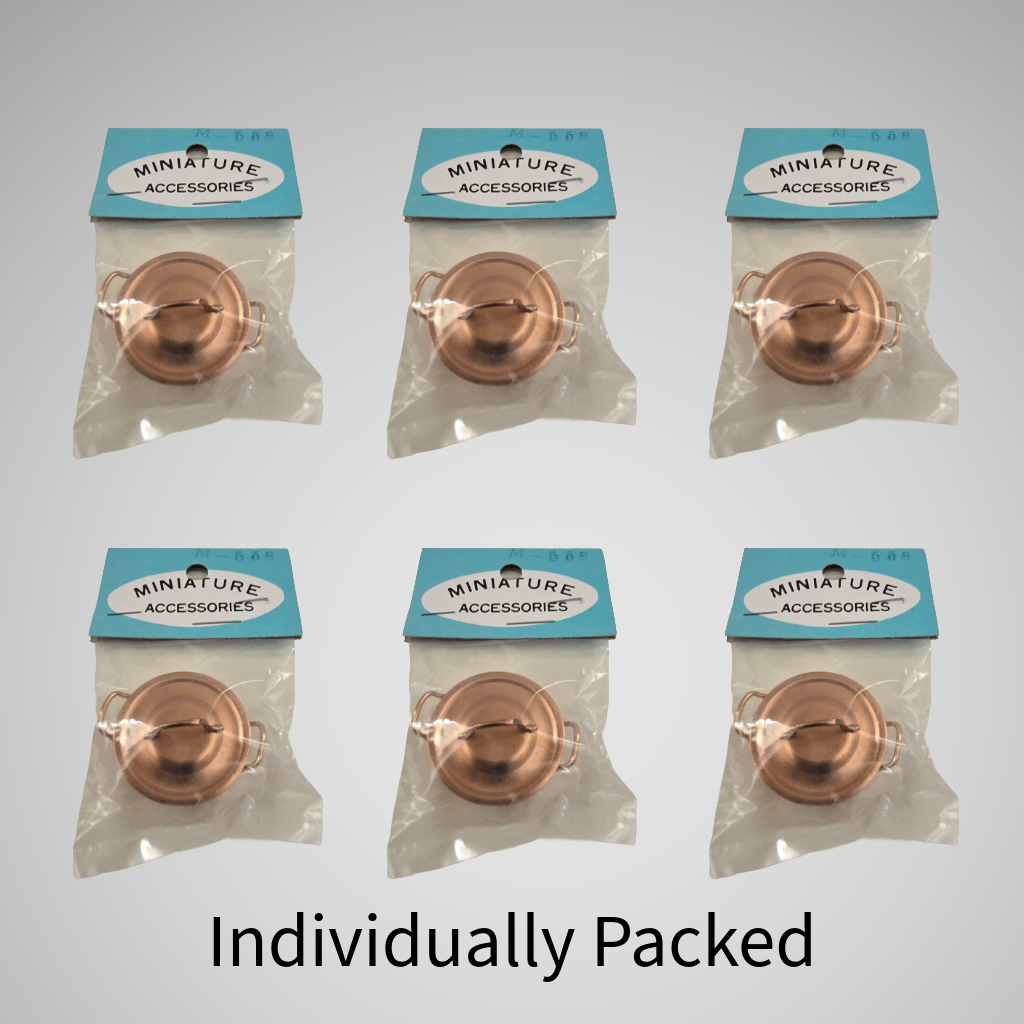Miniature Copper Cooking Pots – 1" Diameter - Set of 6.Dollhouse Kitchen Accessories for 1:12 Scale – Real Metal Cookware for Miniatures, Fairy Gardens, Dioramas, and Shadow Boxes.
